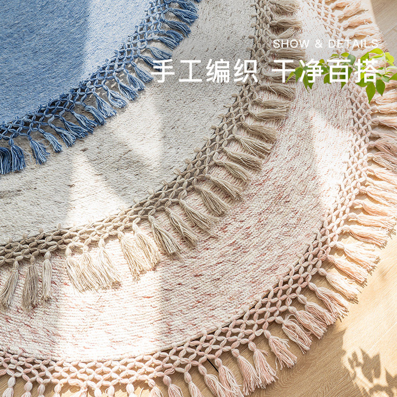 【孤品】印度进口编织羊毛沙发地毯客厅茶几卧室床边毯圆形地毯