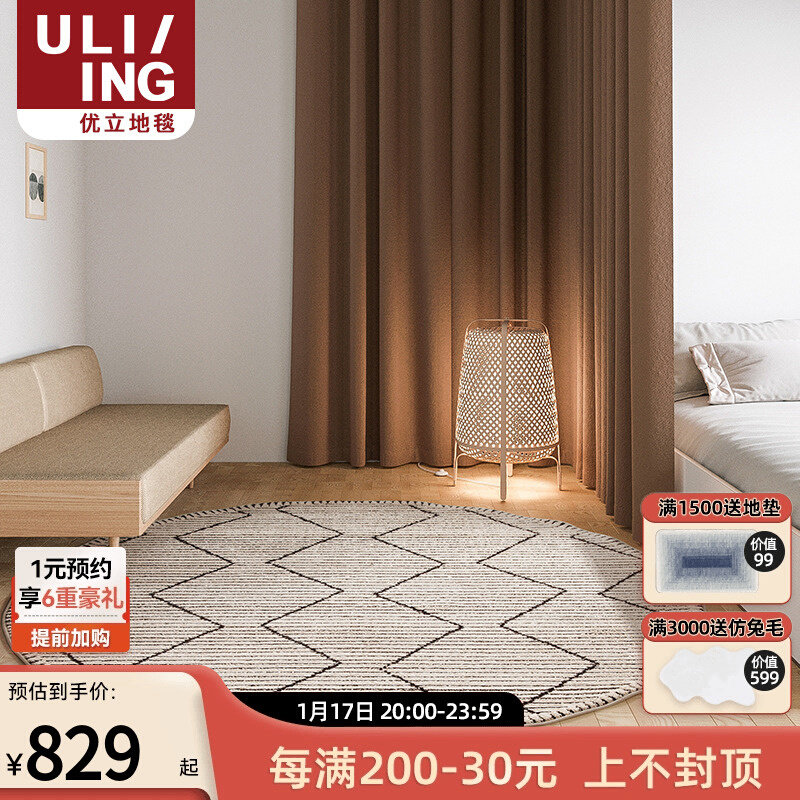 优立圆形地毯客厅沙发奶油风轻奢高级卧室地毯床边衣帽间地毯