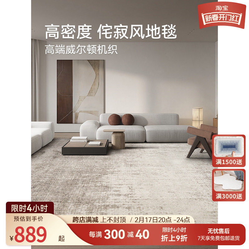 优立客厅地毯侘寂风高级灰轻奢高级沙发茶几耐脏易打理卧室地毯