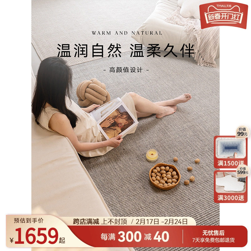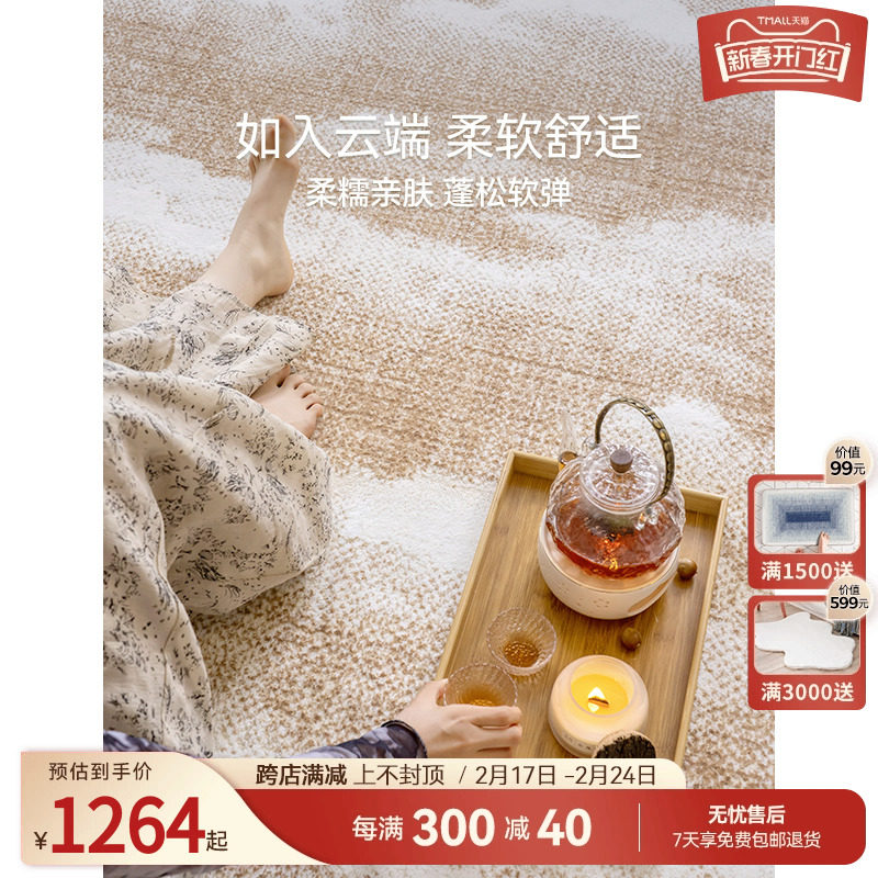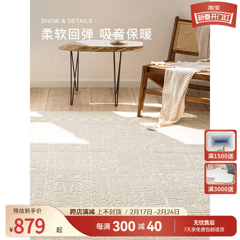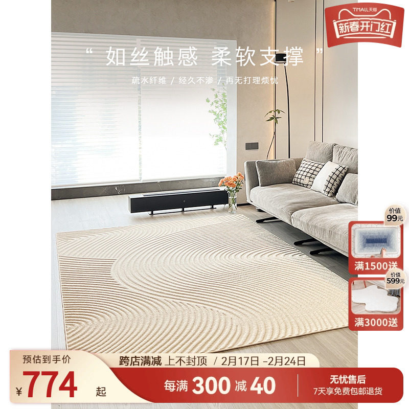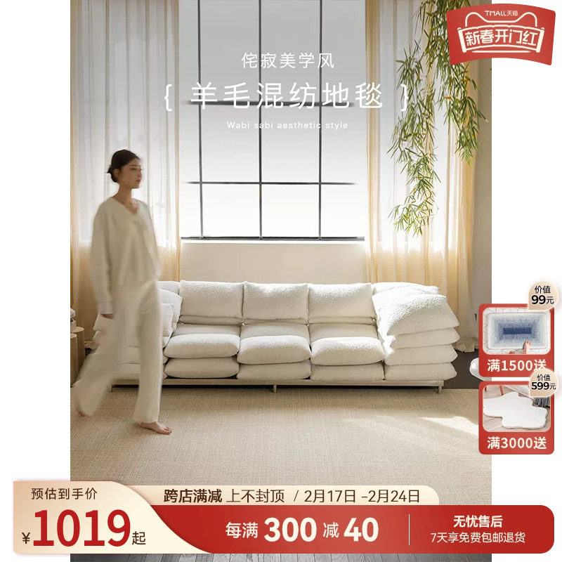 优立客厅地毯茶几毯侘寂日式极简轻奢高级家用房价整铺卧室床边毯