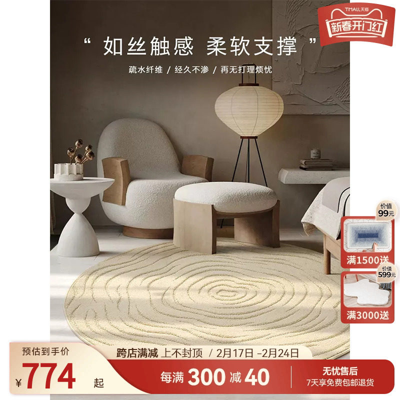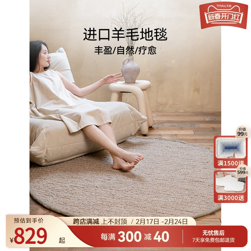 【孤品】优立羊毛圆形地毯客厅茶几毯北欧i异形侘寂现代简约家用