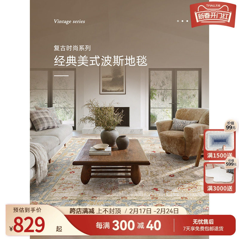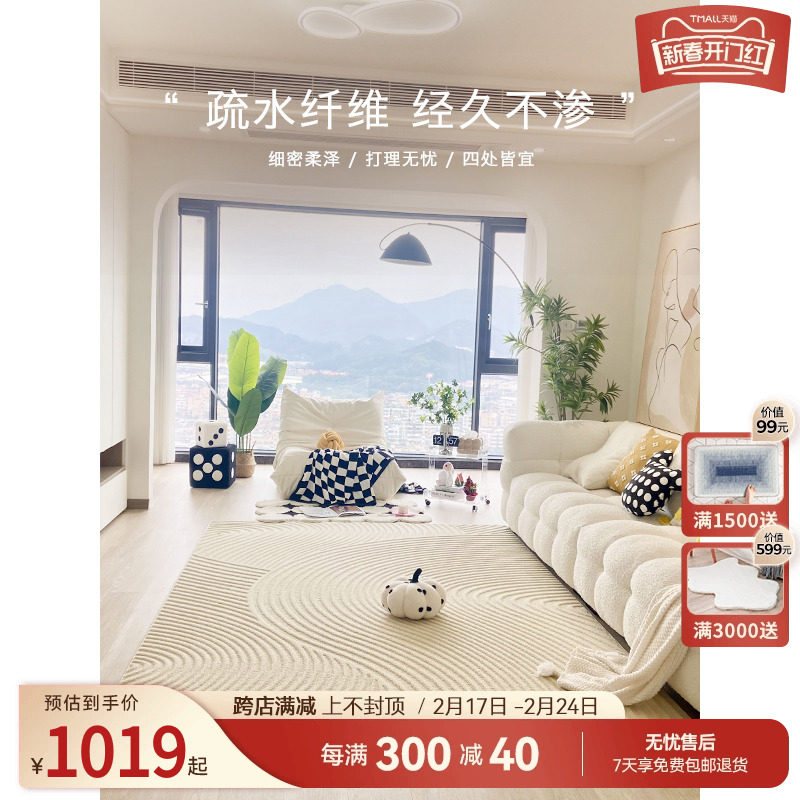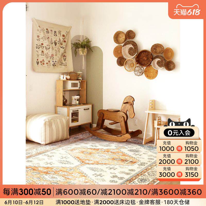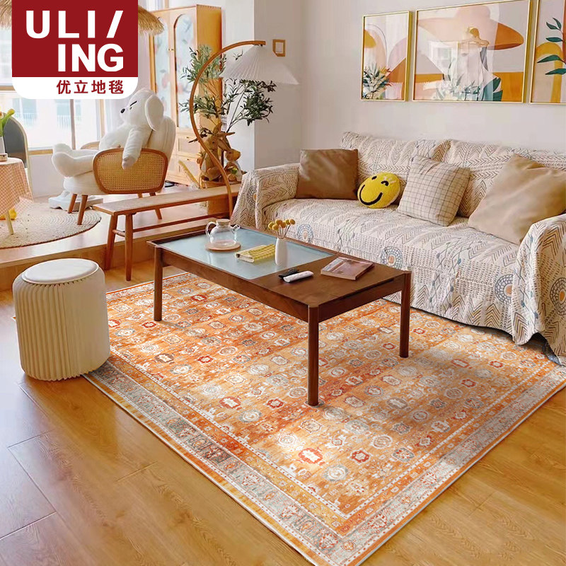 优立客厅地毯免洗可擦复古奶油风防水免打理法式轻奢高级感茶几毯