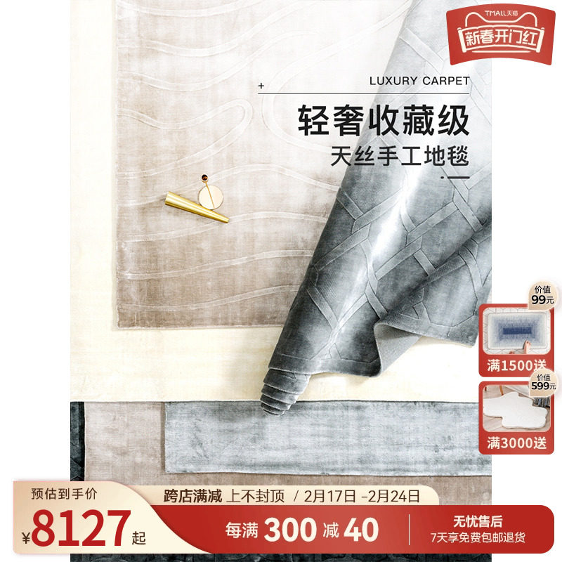 优立轻奢地毯高端客厅百搭天丝大面积茶几毯整铺隔音卧室床边毯