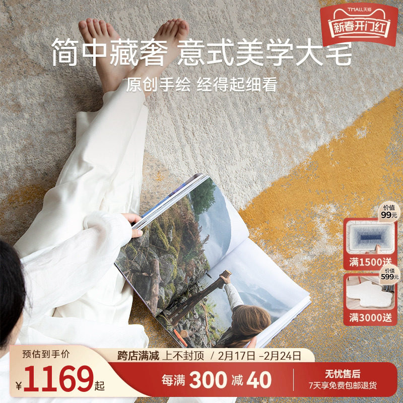 定制【孤品】优立土耳其进口客厅茶几地毯意式极简轻奢百搭卧室床