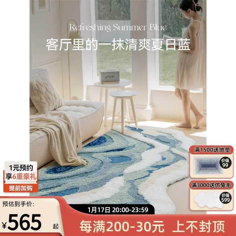 优立异形不规则卧室床边地毯女孩衣帽间客厅轻奢高级茶几2023新款