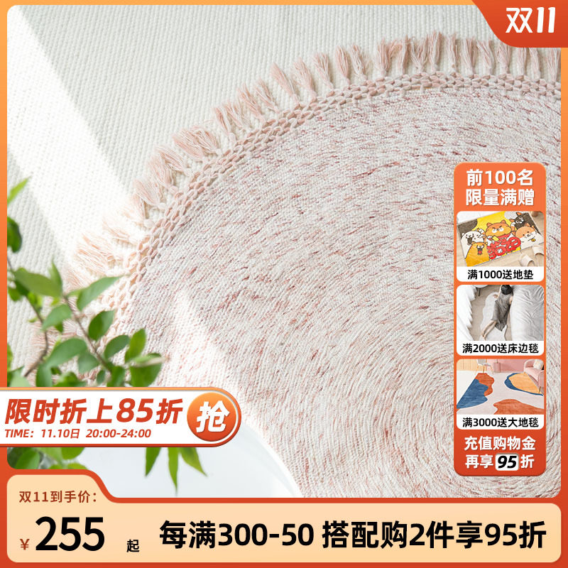 优立印度进口编织羊毛沙发地毯客厅茶几卧室床边毯圆形INS风地毯