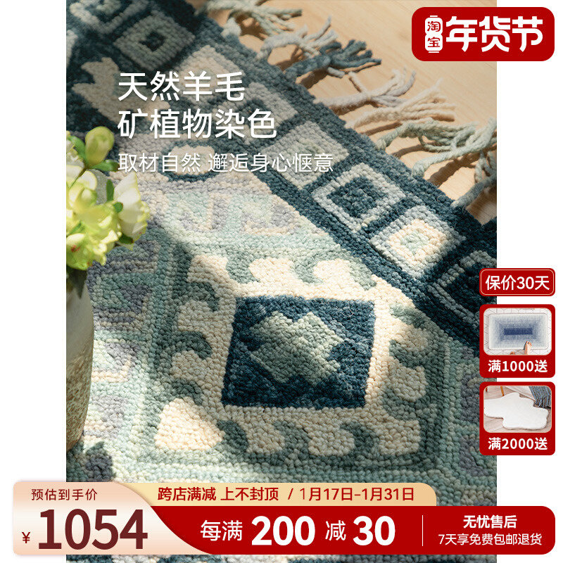 优立进口羊毛手工编织地毯民族风客厅茶几毯美式波西米亚2023新款