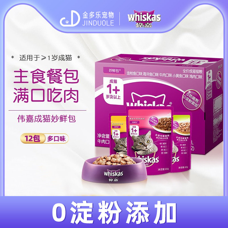 伟嘉进口成猫妙鲜包12包猫咪零食鲜封湿粮软包猫罐头维嘉猫粮补水