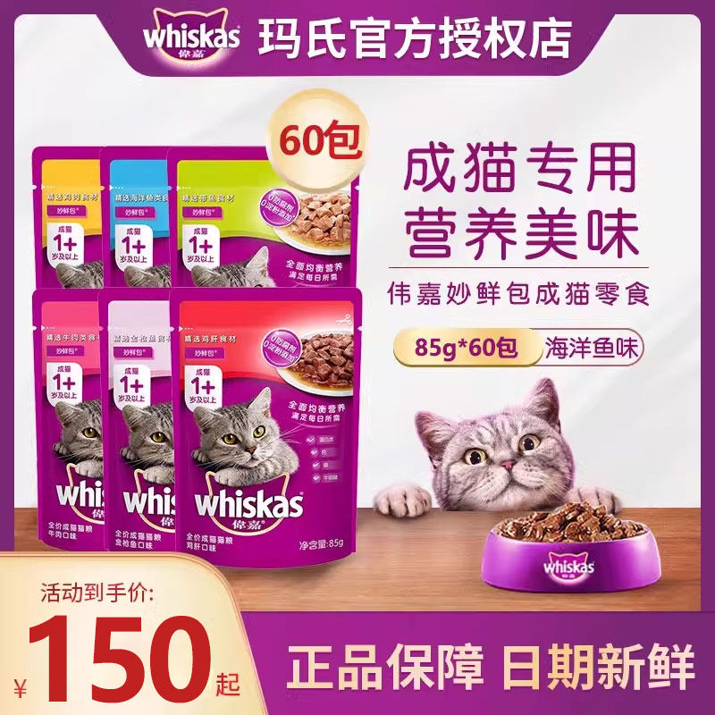 伟嘉妙鲜包猫咪零食官方旗舰店成幼猫湿粮鲜肉软包猫补水罐头60包