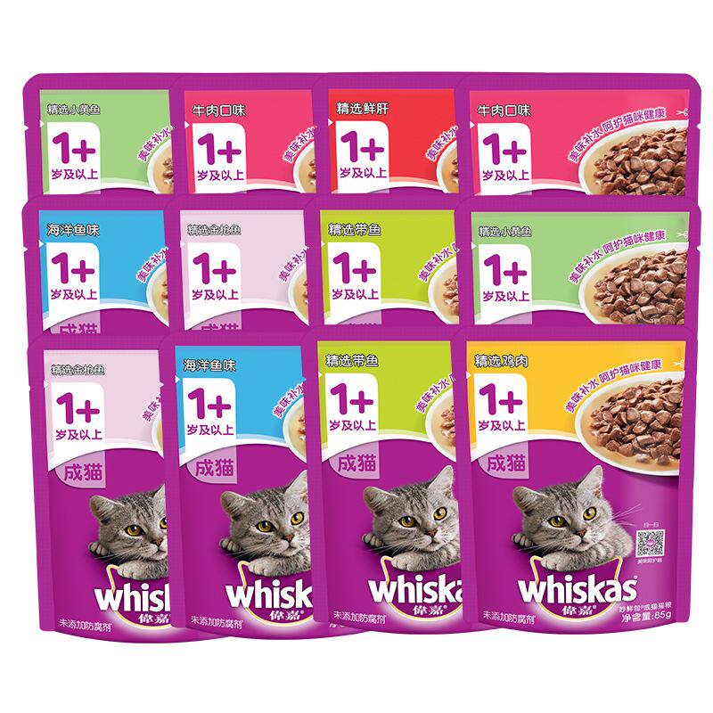 伟嘉进口成猫妙鲜包12包猫咪零食鲜封湿粮软包猫罐头维嘉猫粮补水