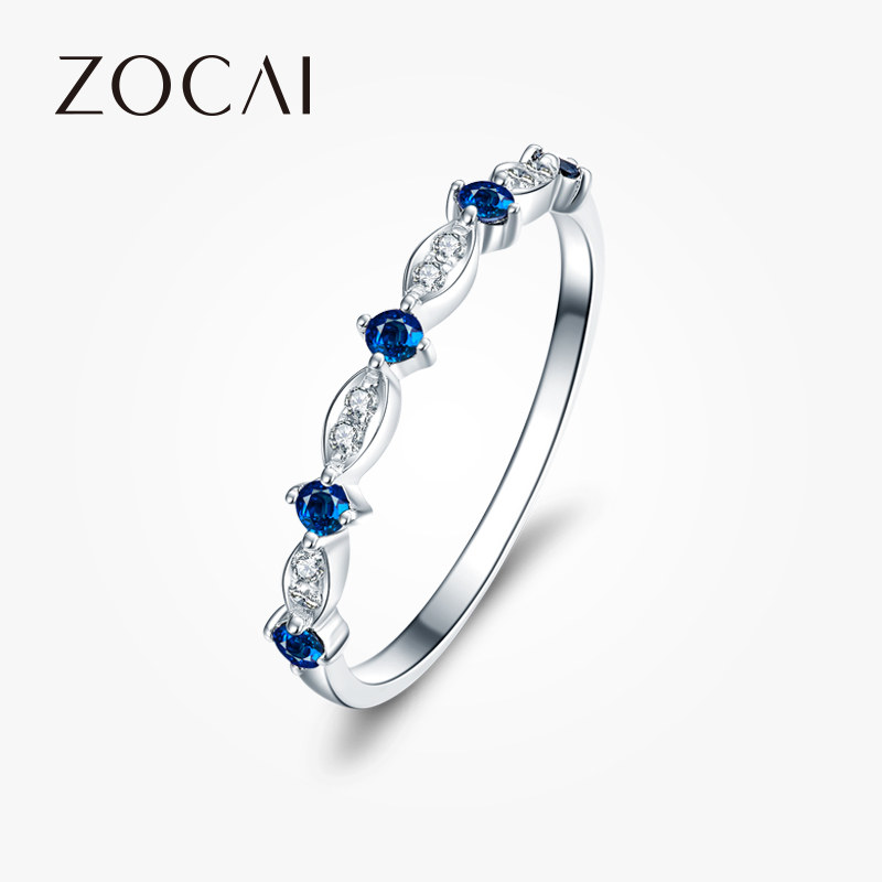 佐卡伊 白18K金蓝宝石戒指彩色宝石镶钻石女戒排戒新品珠宝