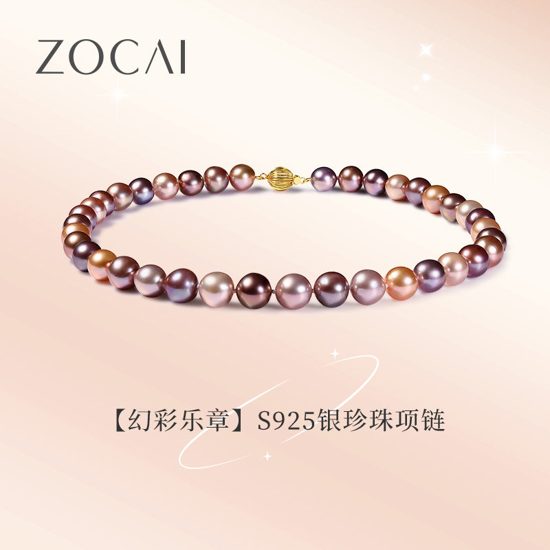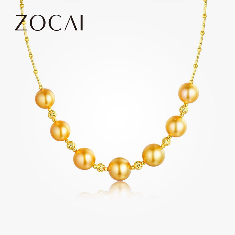 佐卡伊 海水珠18k金南洋金珠七珠微笑链珍珠项链彩色送女友礼物