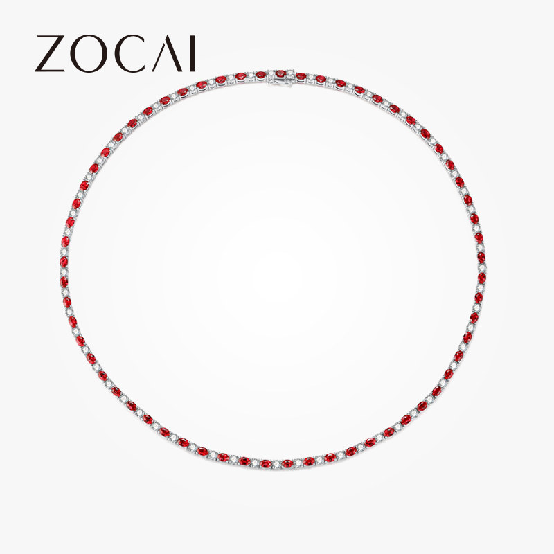 佐卡伊 白18K金红宝石镶嵌钻石项链彩色宝石钻石排镶项坠新品珠宝