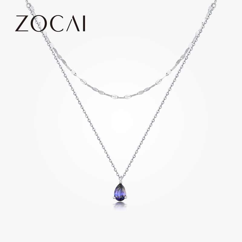 佐卡伊 白18K金蓝宝石项链双层K金项链彩色宝石吊坠女士珠宝项坠