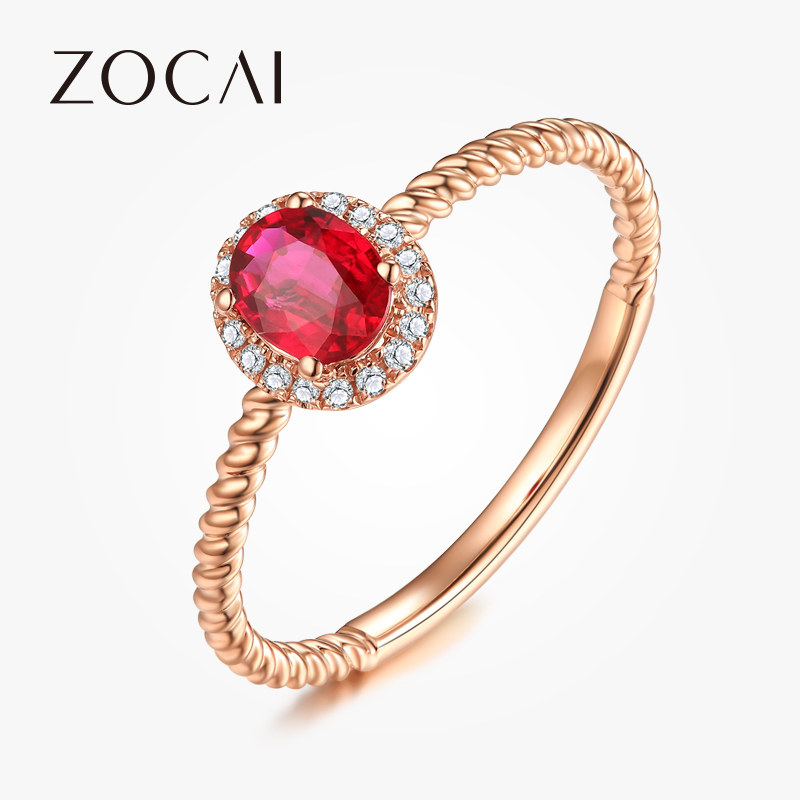 佐卡伊 玫瑰18K金红宝石戒指彩色宝石群镶钻石女戒新品女士珠宝