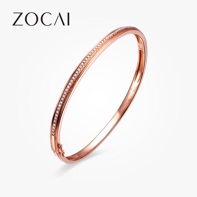 佐卡伊 玫瑰18k金钻石手镯女正品时尚满钻满天星彩金镶钻结婚镯子