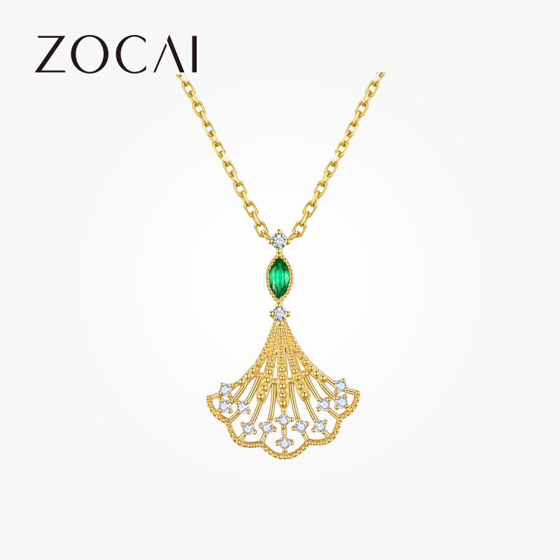 佐卡伊 时尚祖母绿18K金项链 AU750彩金钻石颈饰