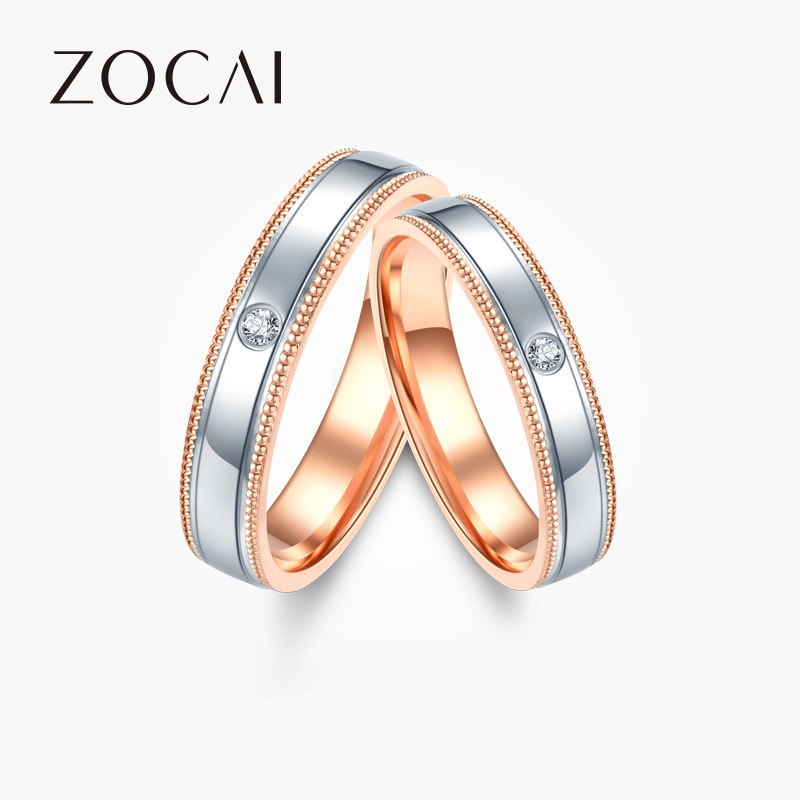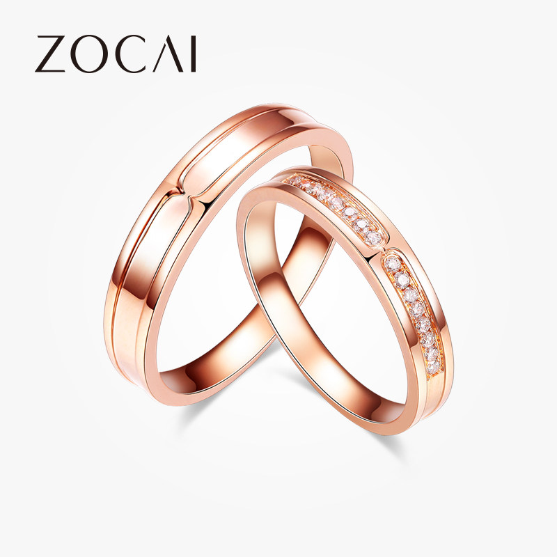 佐卡伊 18k玫瑰彩金情侣款钻石戒指男女士对戒结婚求婚珠宝钻石