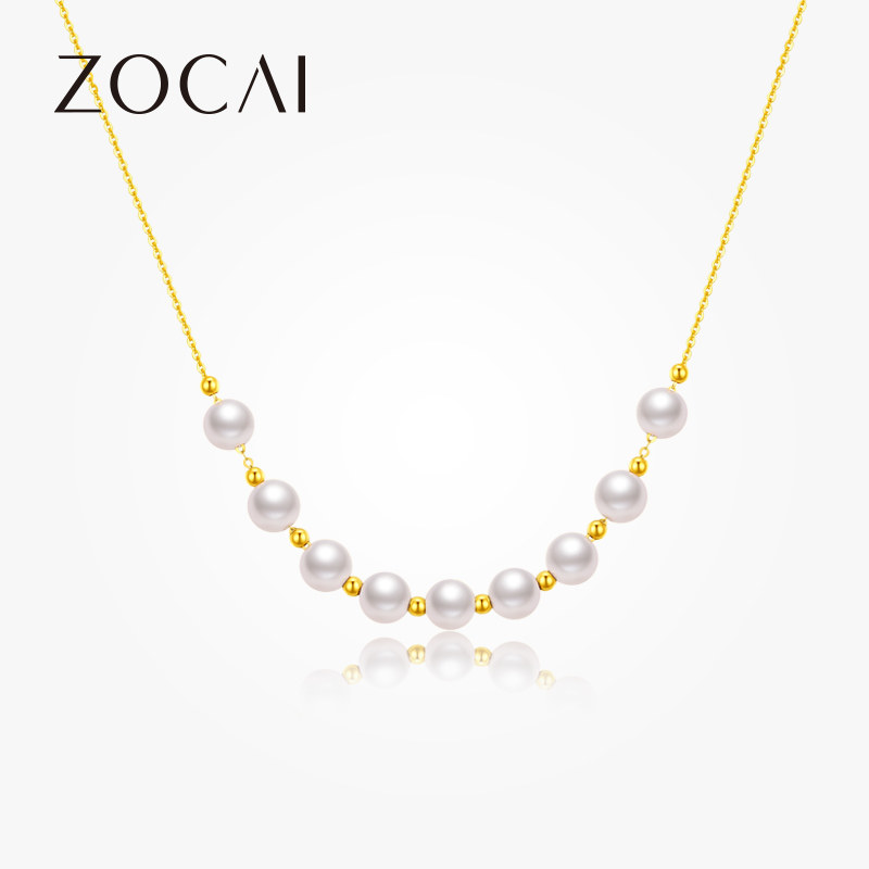 佐卡伊 18K金akoya珍珠项链女彩金珠链锁骨套链微笑