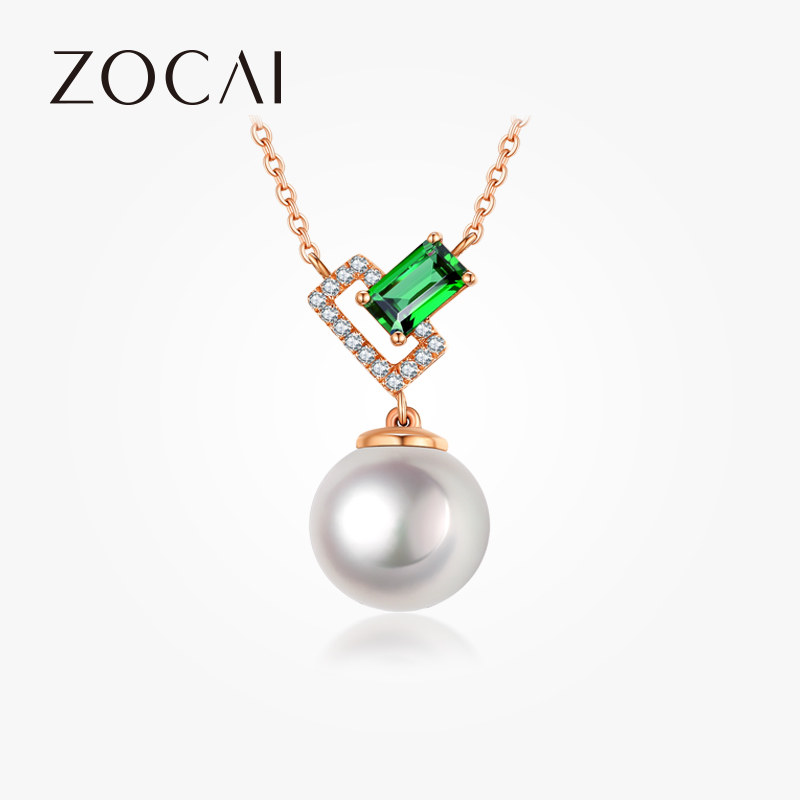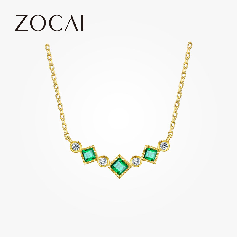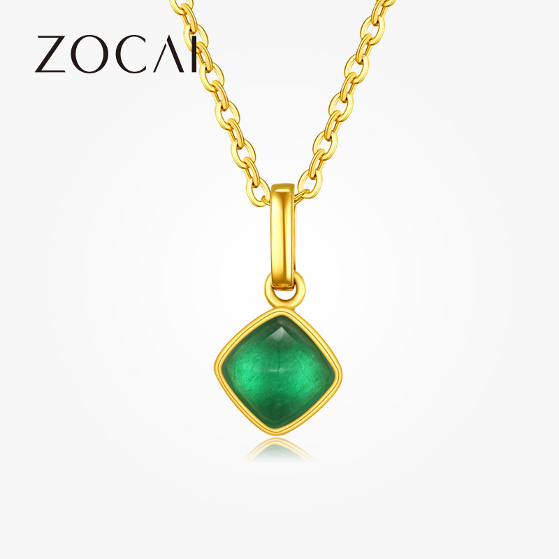 佐卡伊 18K金祖母绿方糖系列吊坠彩金时尚钻石吊坠项链新品礼物