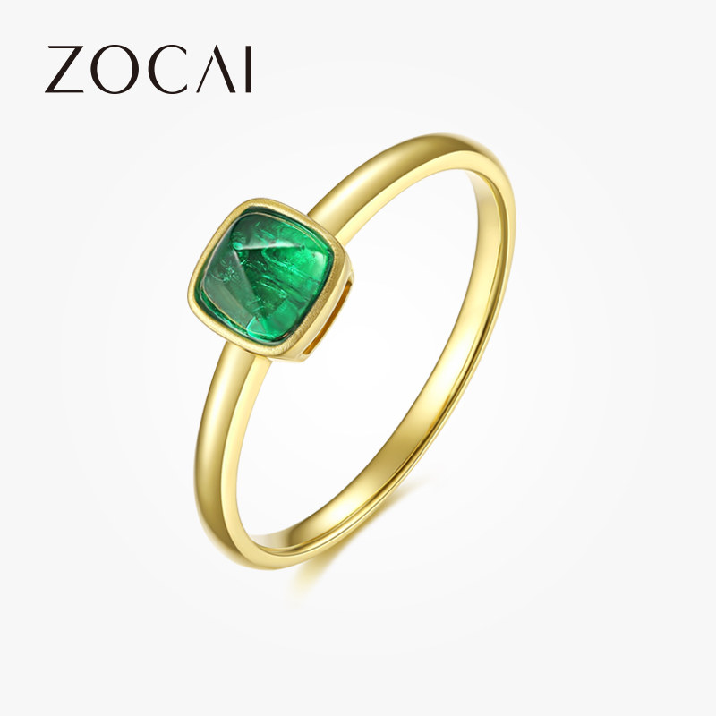 佐卡伊 18K金祖母绿戒指方糖系列彩宝彩色宝石彩金钻石戒指女戒