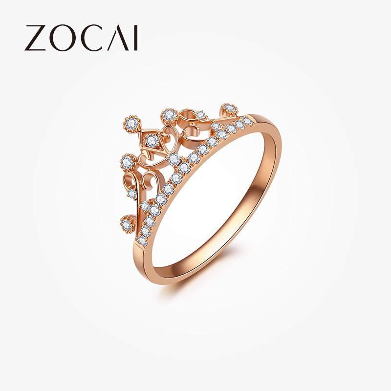 佐卡伊 一生的公主 18k玫瑰金彩金钻戒女士皇冠钻石戒指群镶指环