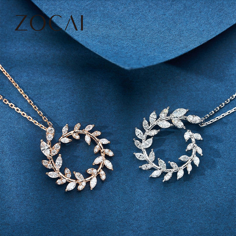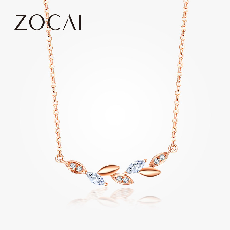 佐卡伊18k玫瑰金橄榄枝项链彩金群镶钻石叶子锁骨链吊坠送女友