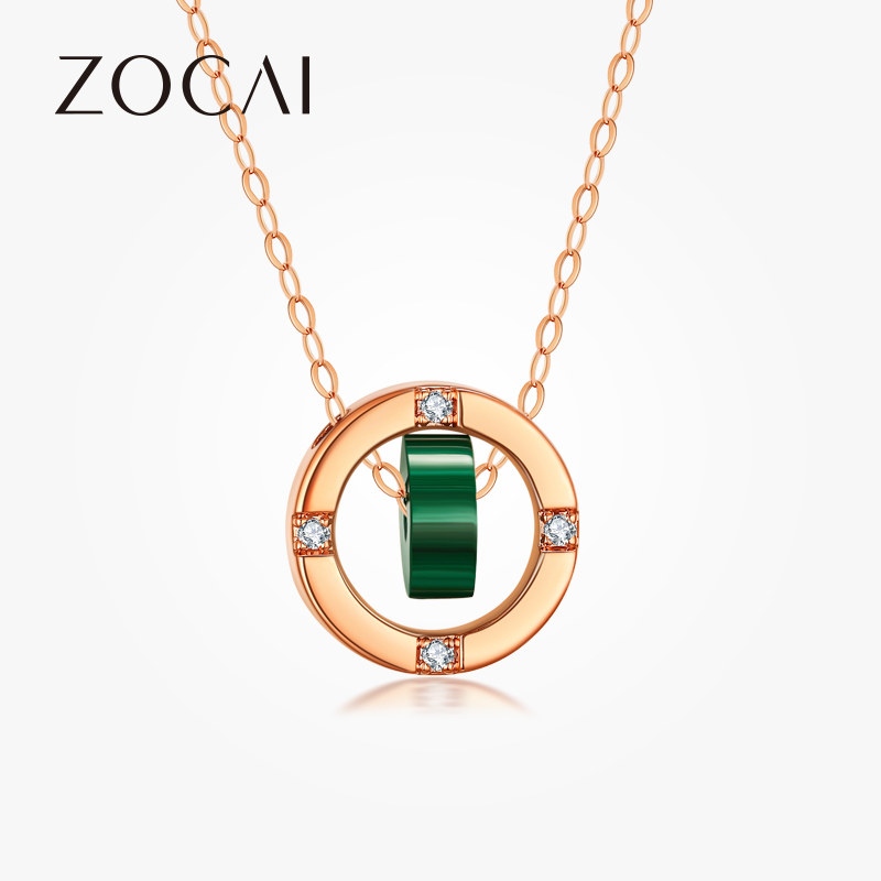 【现货】佐卡伊18K金项链孔雀石钻石项链AU750彩金吊坠送礼珠宝