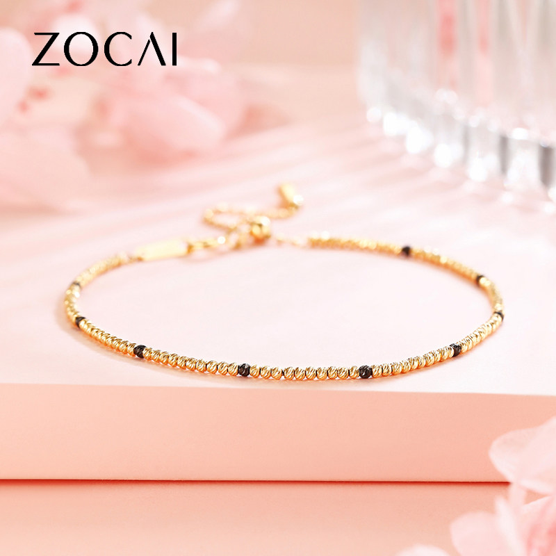佐卡伊 爆闪K金手链黄18K金彩金手链黑金珠子手饰爆闪金珠珠手串