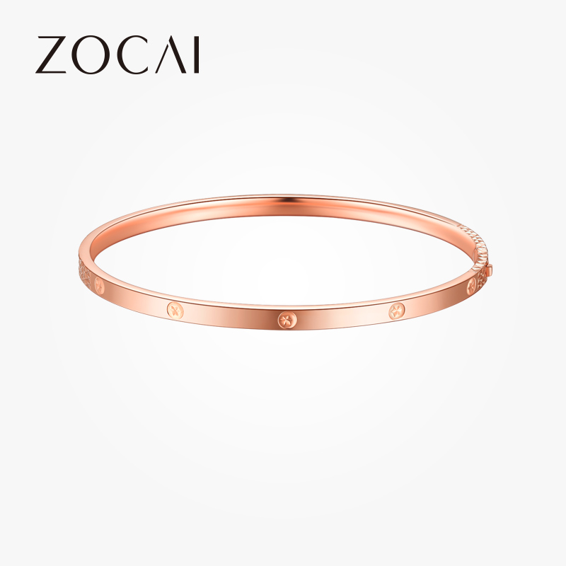 佐卡伊 18K玫瑰金手镯 时尚K金手饰女士正品官方彩金手镯经典
