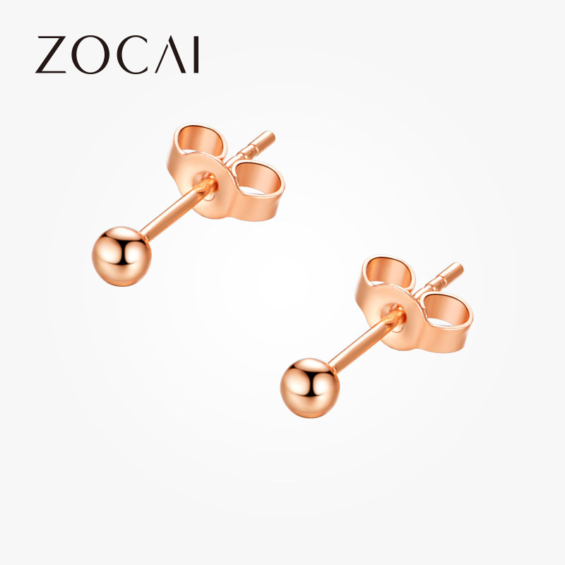 佐卡伊 小星球 18k玫瑰金耳钉小豆豆正品彩金圆球耳饰女士素金