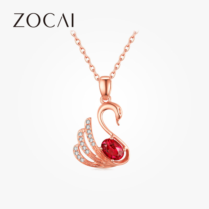 佐卡伊 18k玫瑰金红碧玺吊坠彩色宝石天鹅项链女彩金镶钻锁骨链