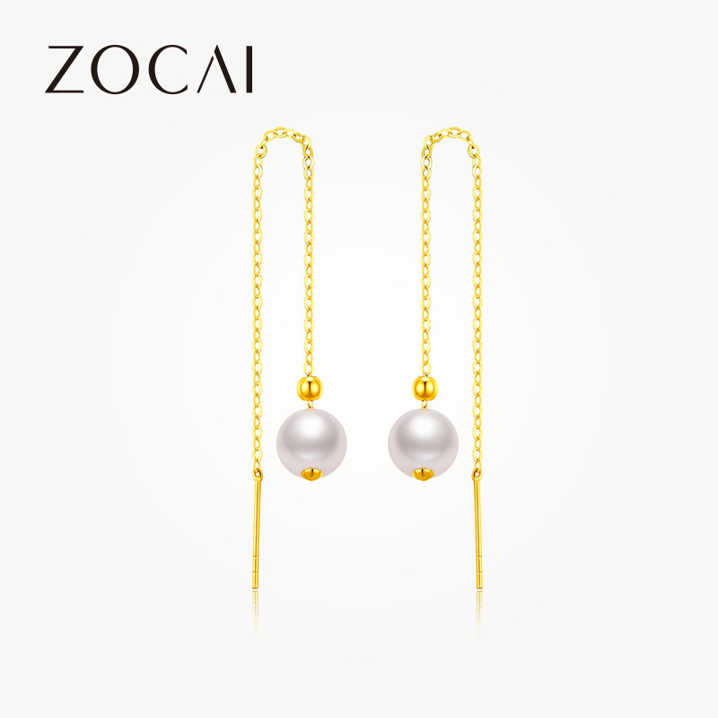 佐卡伊 18K金akoya珍珠耳饰彩金耳线耳坠气质耳钉