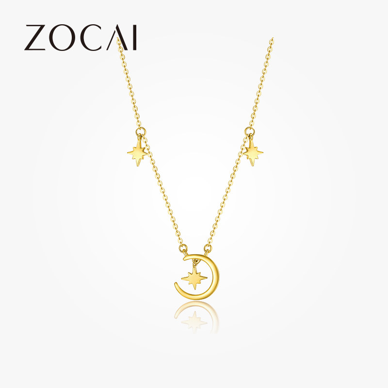 佐卡伊 18K黄金项链素金星月锁骨链au750彩金女士吊坠项链新品