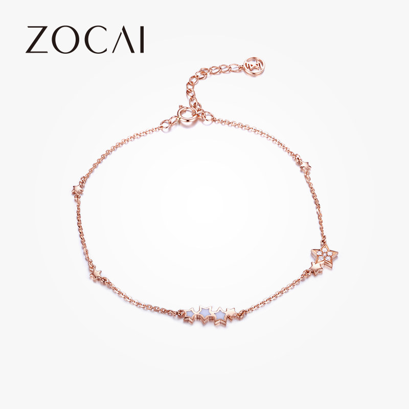 佐卡伊 繁星 18k玫瑰金钻石手链女真钻正品au750彩金星星简约细款