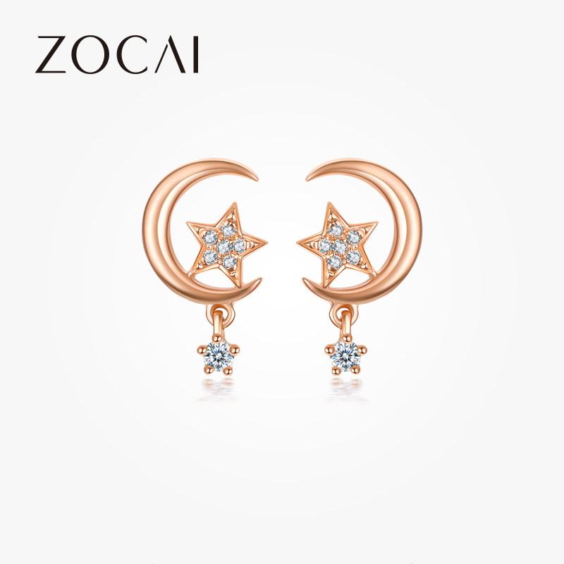 佐卡伊 18k玫瑰金星月钻石耳钉耳环真钻au750彩金耳饰女轻奢小众