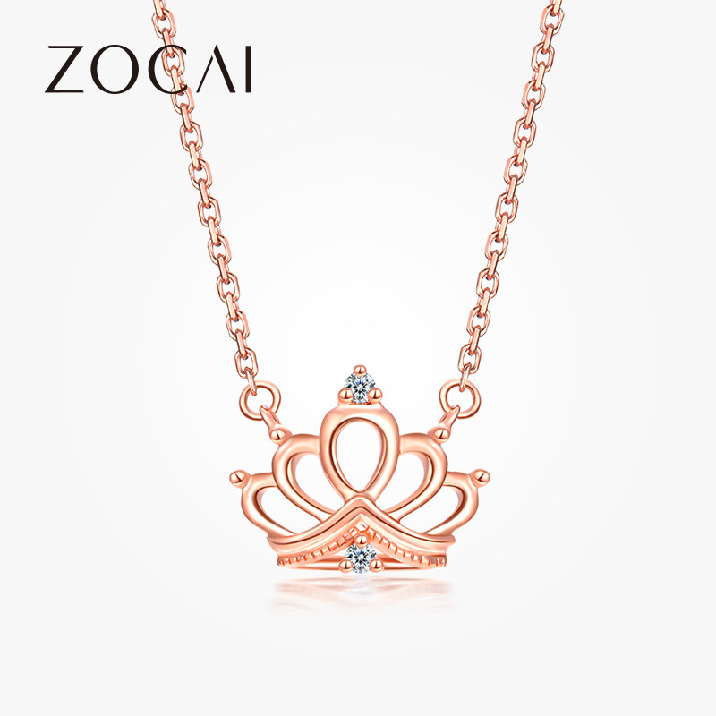 佐卡伊 一生的公主 玫瑰18k金彩金镶钻小皇冠钻石项链女锁骨链
