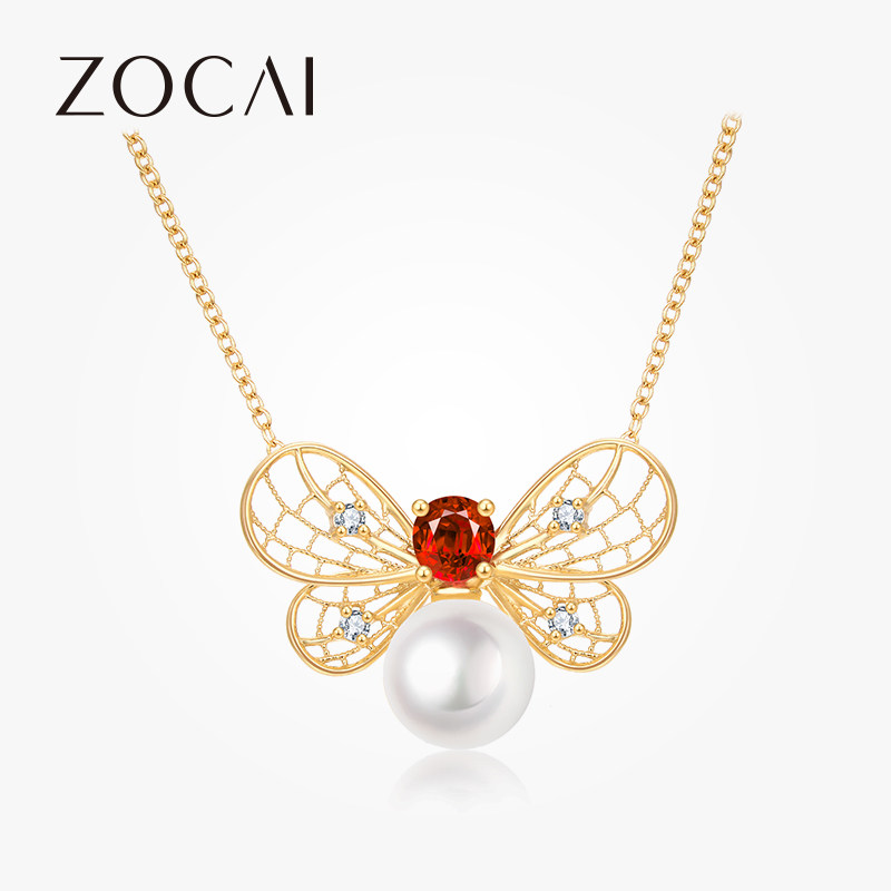 佐卡伊 18K金石榴石钻石项链珍珠宝石彩金钻石项链吊坠新品礼物