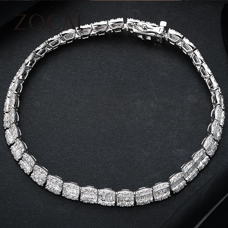 佐卡伊 18K金满钻手链真钻女士女宽时尚彩金镶钻镶钻正品