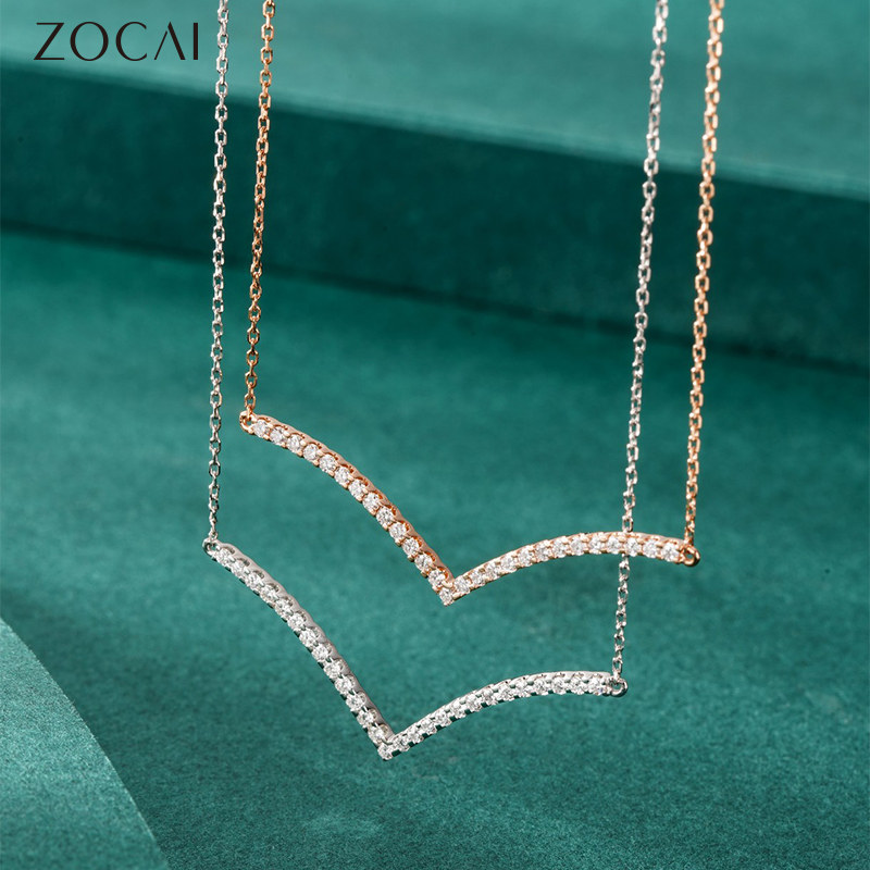佐卡伊钻石项链 18K金彩金V字钻石锁骨链项链女士新品珠宝礼物