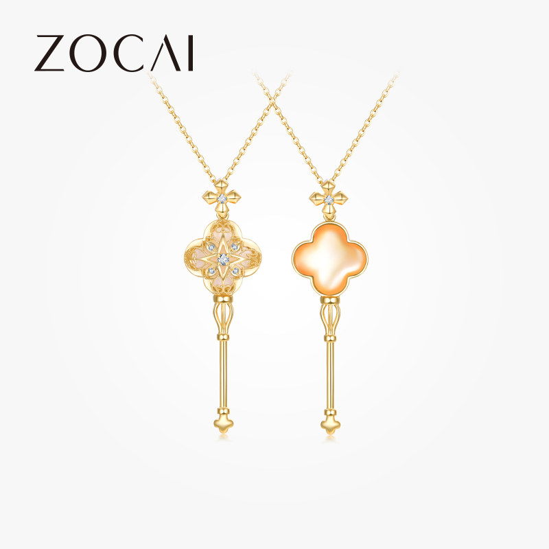 佐卡伊 仙女魔法棒18k金钻石项链真钻彩金女士四叶草珠宝吊坠