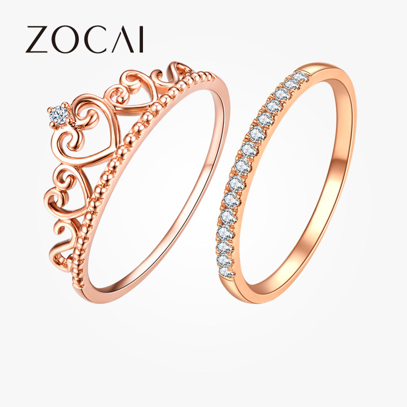 佐卡伊 皇冠钻石戒指女士18k玫瑰金彩金叠戴时尚浪漫表白珠宝钻戒