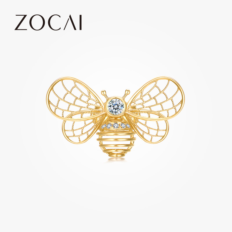 佐卡伊钻石耳钉胸针两用款 花丝蜜蜂 玫瑰18K金彩金钻石珠宝首饰