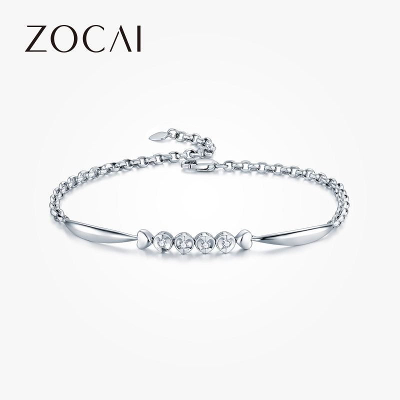 佐卡伊 心之吻白18k金小众设计彩金钻石手链女时尚简约结婚手镯