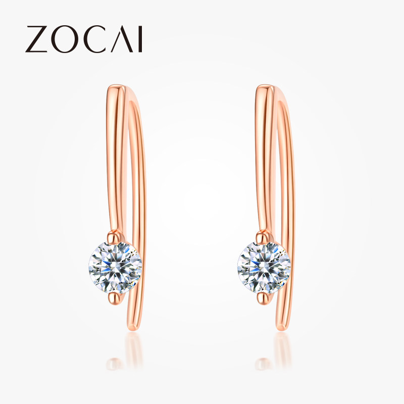 佐卡伊 18k玫瑰金钻石耳钉女真钻气质正品750彩金耳饰