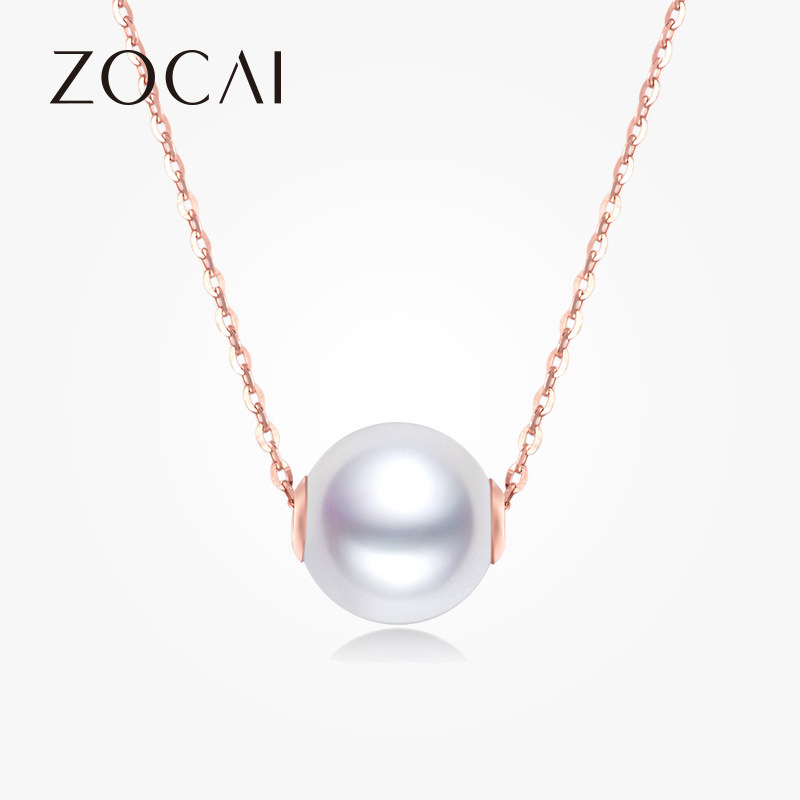 佐卡伊 18k彩金淡水珍珠锁骨项链吊坠单颗圆形正品送妈妈新品礼物