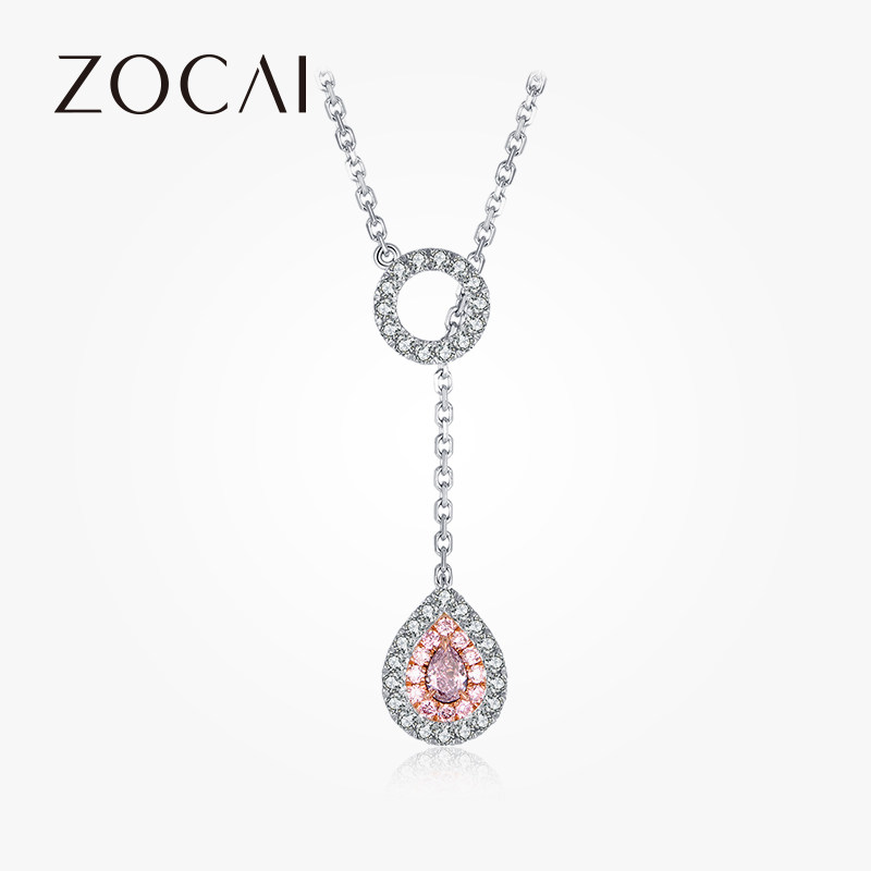 佐卡伊 18k彩金水滴形粉钻项链群镶钻石吊坠女款专柜正品定制珠宝