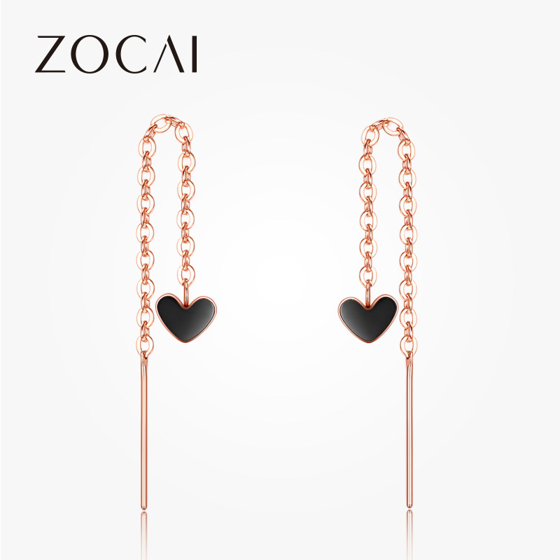 【现货】佐卡伊 玫瑰18K金耳饰女士小红心爱心长款耳环耳线彩金