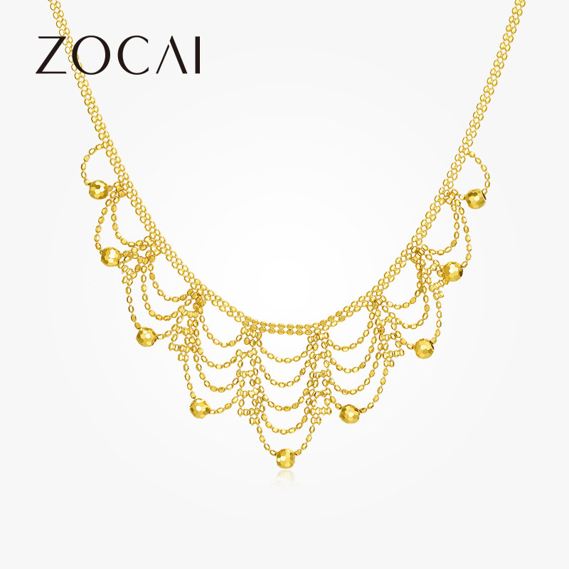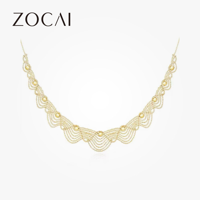 佐卡伊 黄18K金蕾丝项链设计k金彩金项链女珠宝新品
