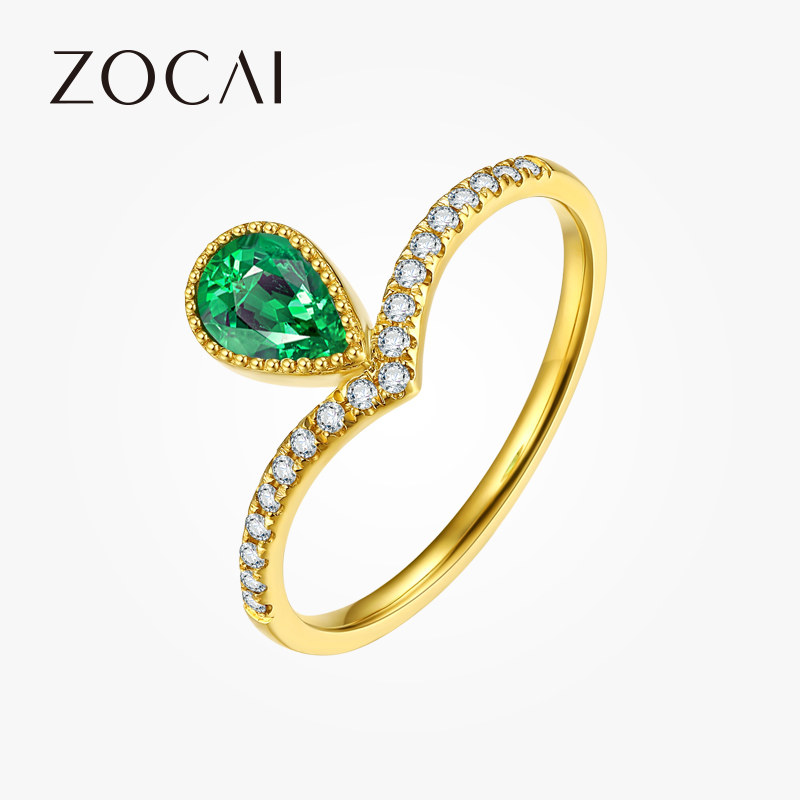 佐卡伊 18K金祖母绿戒指 水滴形彩宝彩色宝石彩金钻石戒指女戒